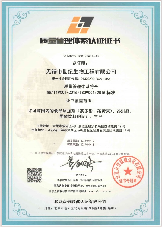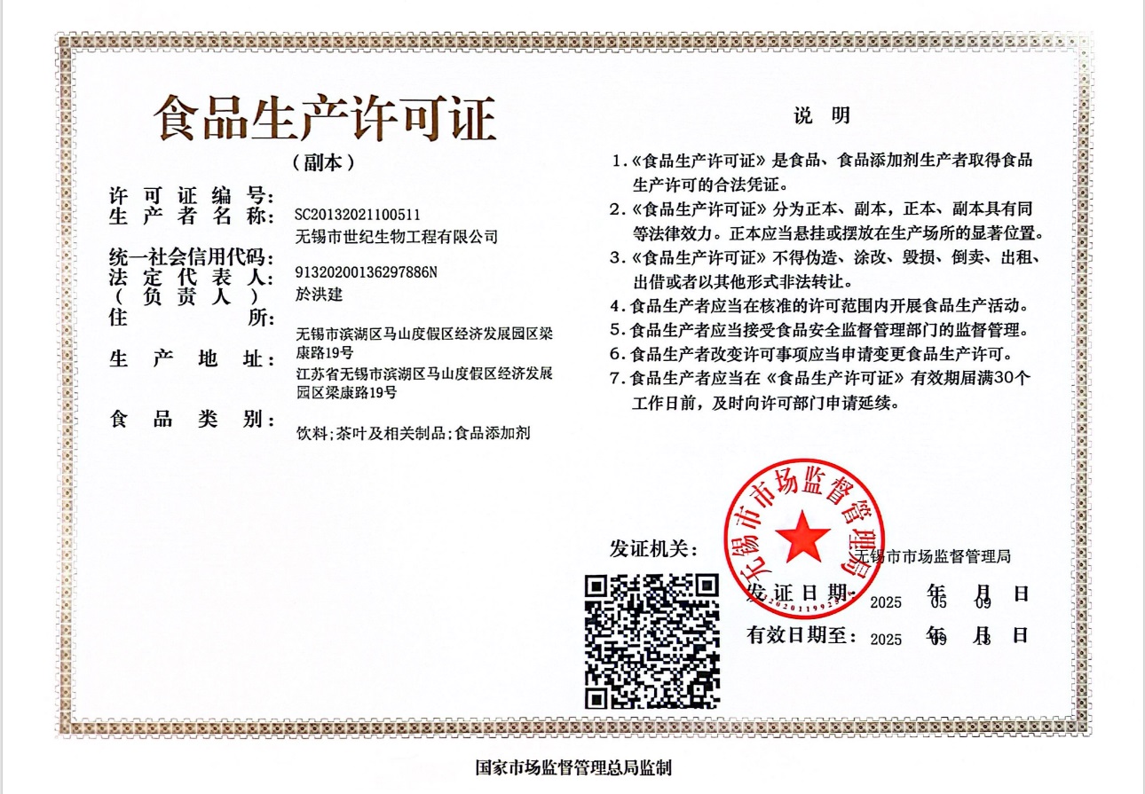 地址:無錫市濱湖區馬山工業園區梁康路19號 E-mail: sales@teaturn.com Copyright © 2015 無錫市世紀生物工程有限公司 teaturn.com 版權所有 京ICP證000000號